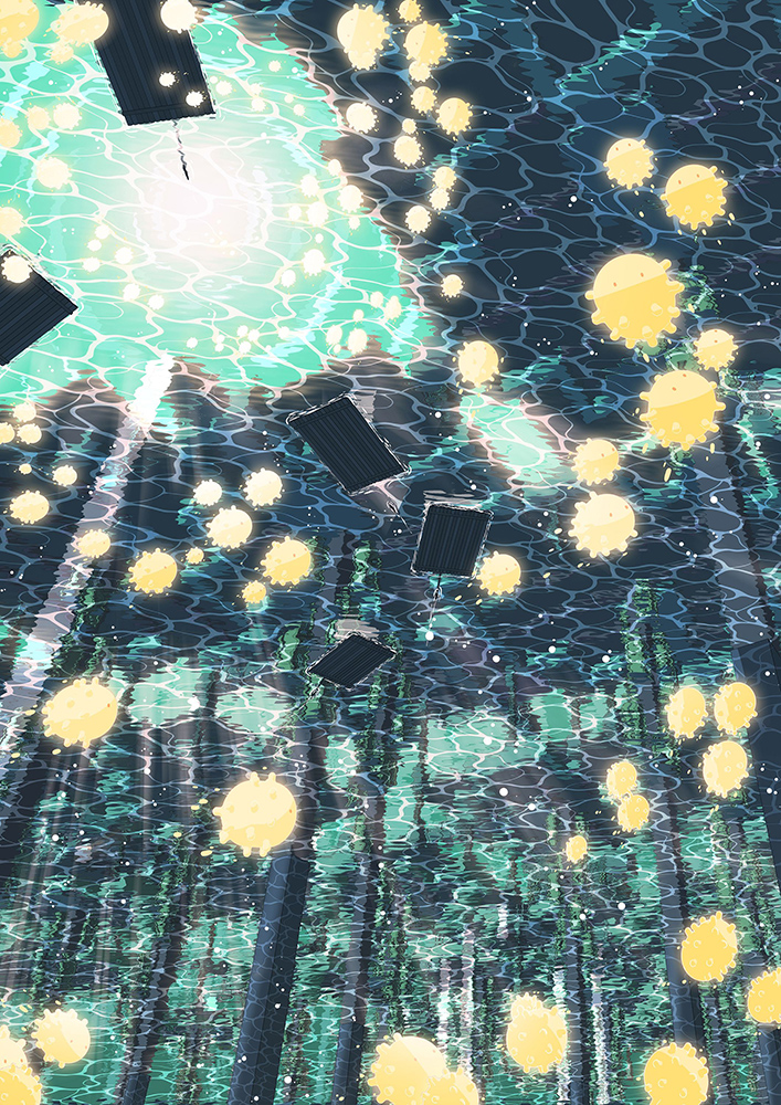 Edmund Tan, Kuala Lumpur – Malesia 1995, Luminites, 2023, Arte digitale disegnata a mano e sovrapposta, stampa giclée, 30 x 42 cm.