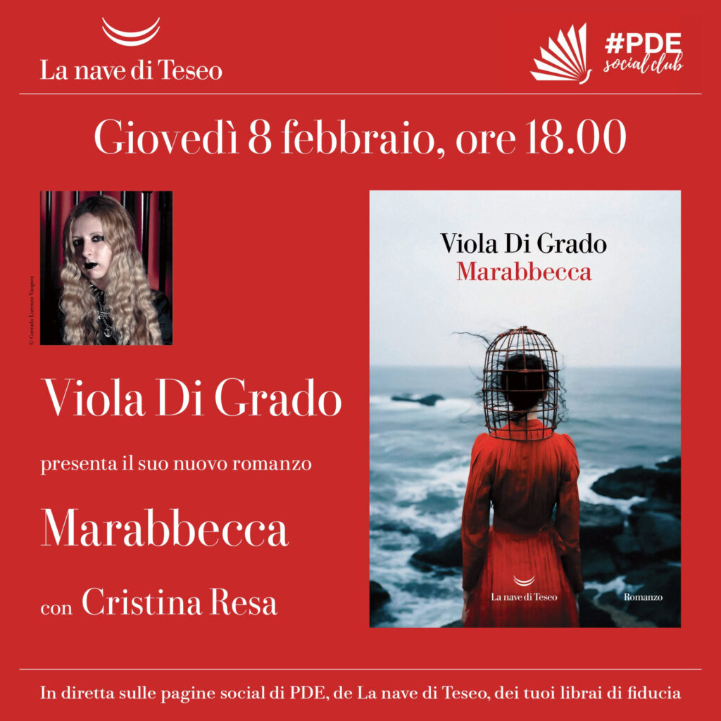 Care amiche, cari amici, giovedì 8 febbraio alle 18.00, ospite di #PDESocialClub sarà Viola Di Grado con il suo nuovo romanzo Marabbecca, edito da La nave di Teseo. A condurre l’intervista Cristina Resa, che di folklore, streghe, favole, ne sa assai. Come sempre, la conversazione potrà essere seguita sulle pagine Facebook, LinkedIn, YouTube di PDE, della casa editrice e di tutte le librerie che vorranno condividere.