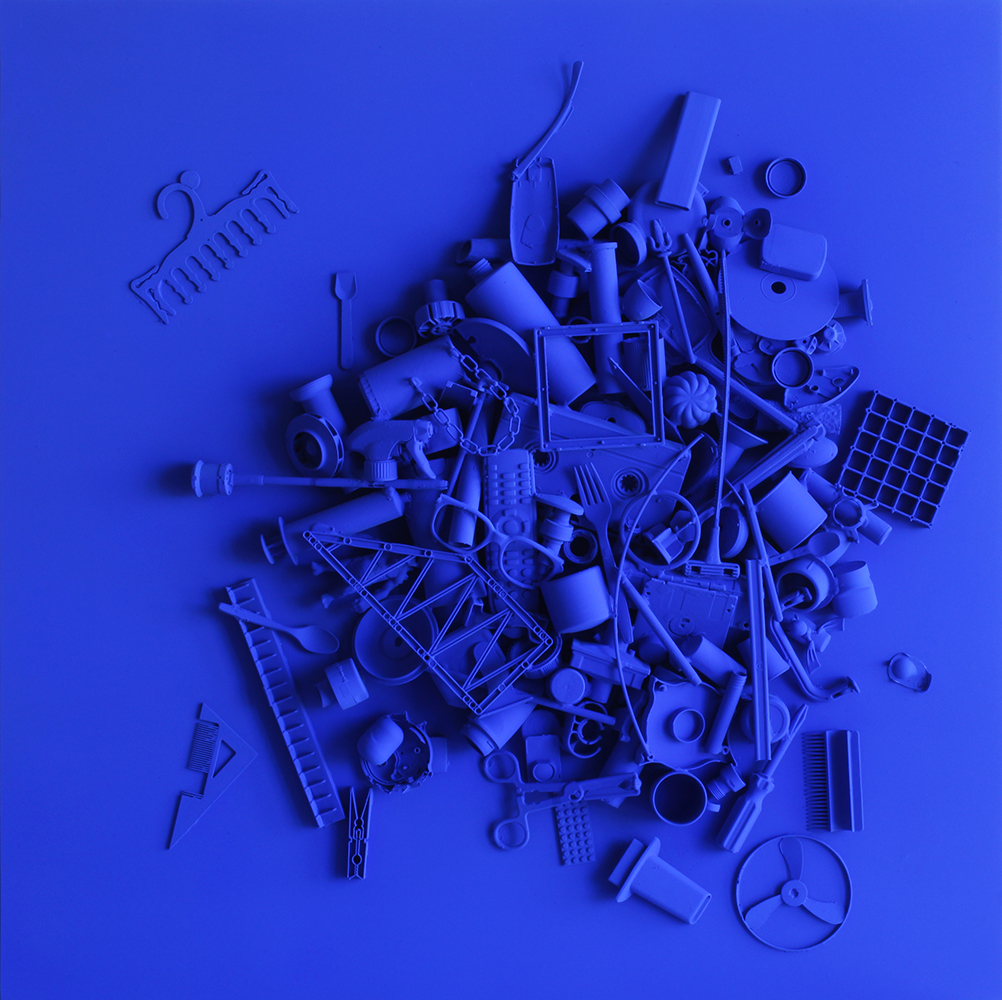 Tosoni sceglie la plastica – protagonista del sistema di produzione industriale moderno – non solo come elemento simbolico per condurre una riflessione attualissima sull’inquinamento globale, ma anche come elemento compositivo. La plastica è dunque eletta a materiale di lavoro, al pari del colore da stendere o della creta da modellare. Raccogliendo gli oggetti di plastica dispersi nell’ambiente, l’artista dimostra di interagire con il proprio tempo e di abitarlo esteticamente nella maniera più responsabile e sociale possibile.