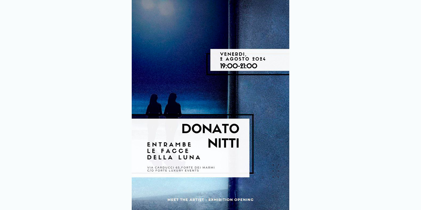 La Digital art incontra il lusso innovativo. Verrà inaugurata venerdì 2 agosto 2024 alle 19:00 la mostra “Entrambe le facce della luna” di Donato Nitti a Forte dei Marmi presso la sede di Forte Luxury Events, un’agenzia che si dedica a ridefinire il concetto di lusso in Italia attraverso un approccio innovativo e personalizzato.