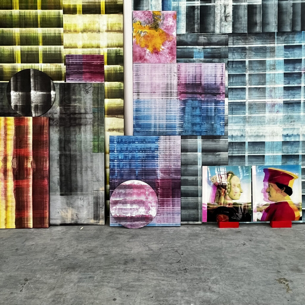 I ritratti di Federico e Battista Sforza dei primi anni Duemila sono una rielaborazione da Piero della Francesca e sono presentati in quella che secondo Baldassarre Castiglione fu la “suprema excellenzia del suo magno palazzo”, la biblioteca, mentre una numerosa rappresentanza di opere astratte sono raggruppate e accostate alle pareti della Grande Cucina.