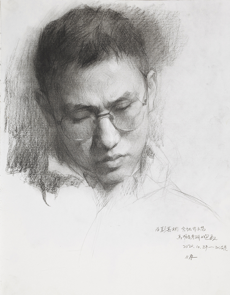 L’artista invita il pubblico a mettere in discussione la natura stessa della “verità” e della “realtà” nell’arte. I suoi ritratti e i paesaggi trascendono la semplice replica del vero, immergendosi nella complessità e nei dettagli rintracciabili sotto la superficie delle cose e delle persone. Una delle sezioni della mostra è dedicata al disegno, strumento di primaria importanza per l’artista, sia come elemento preparatorio alla pittura a olio, sia come opera autonoma e fine a se stessa. Nella pratica del disegno Yu Ming dimostra piena maestria, oltre ad una meticolosa attenzione ai processi esecutivi, alla composizione, al volume, allo spazio,così come alle luci e alle ombre; passaggi preliminari rispetto al successivo esercizio del tratto del pennello e delle qualità cromatiche. Nelle sue tele emerge equilibrio tra l’estetica tradizionale cinese e la sensibilità occidentale in un’accattivante fusione di culture e filosofie artistiche.