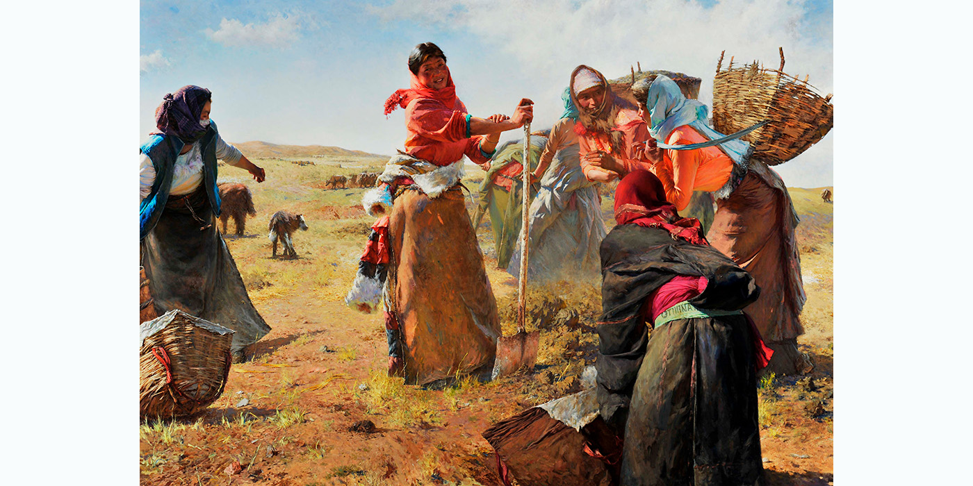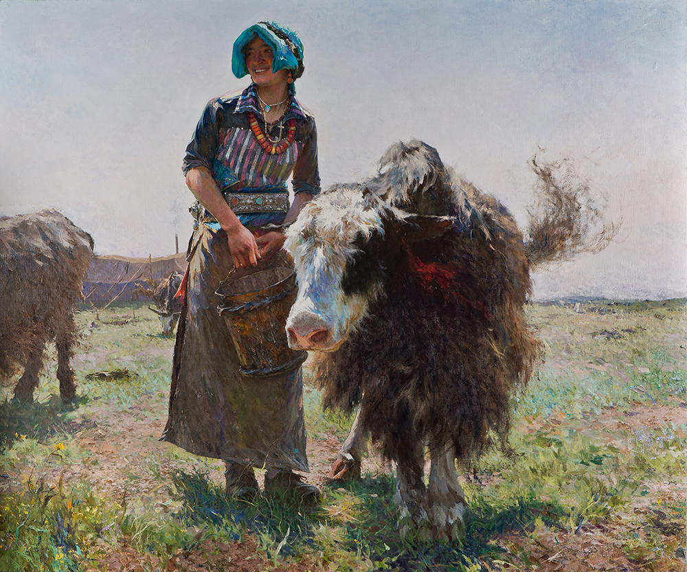 Yu Ming sottolinea che “l’altopiano innevato è un ambiente difficile per la sopravvivenza umana, ma la gente è piena di sole e forza. Si avvicinano alla vita con entusiasmo, lavorando e recitando preghiere ogni giorno. Hanno fiducia nella vita e forti credenze religiose. Dal mio punto di vista di straniero, il loro modo di vivere appare naturalmente sano e potente. Sia l’aspetto fisico del popolo tibetano che i paesaggi locali sono soggetti ideali per la pittura a olio”.